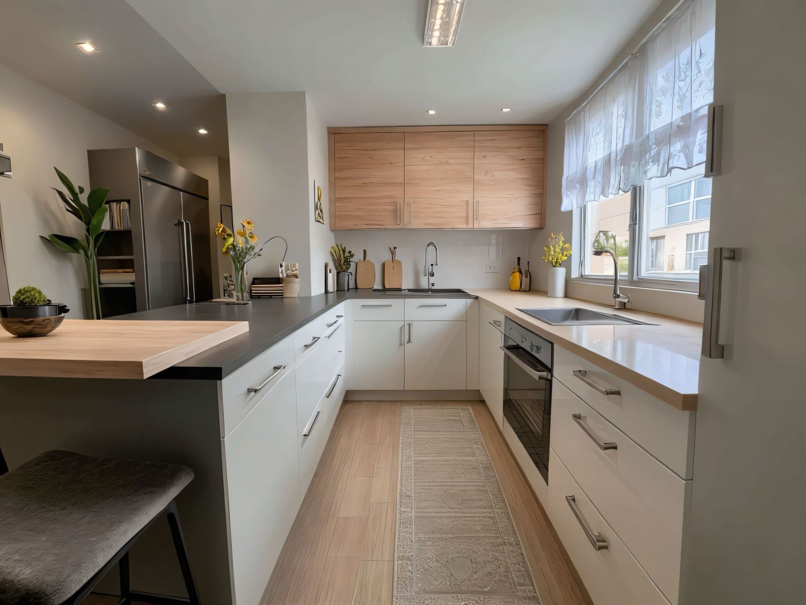 Die Wohnung bietet eine gehobene Ausstattung, die keine Wünsche offenlässt. Die Bodenbeläge kombinieren stilvolle Fliesen in den Feuchträumen mit warmem Laminat in den Wohnbereichen, was sowohl Komfort als auch Eleganz ausstrahlt. Die Zentralheizung sorgt für ein angenehmes Raumklima, und die effiziente Öl-Befeuerung unterstützt eine kostengünstige Heizweise. Die moderne Einbauküche (EBK) ist bestens ausgestattet und bietet ausreichend Platz für kulinarische Experimente.