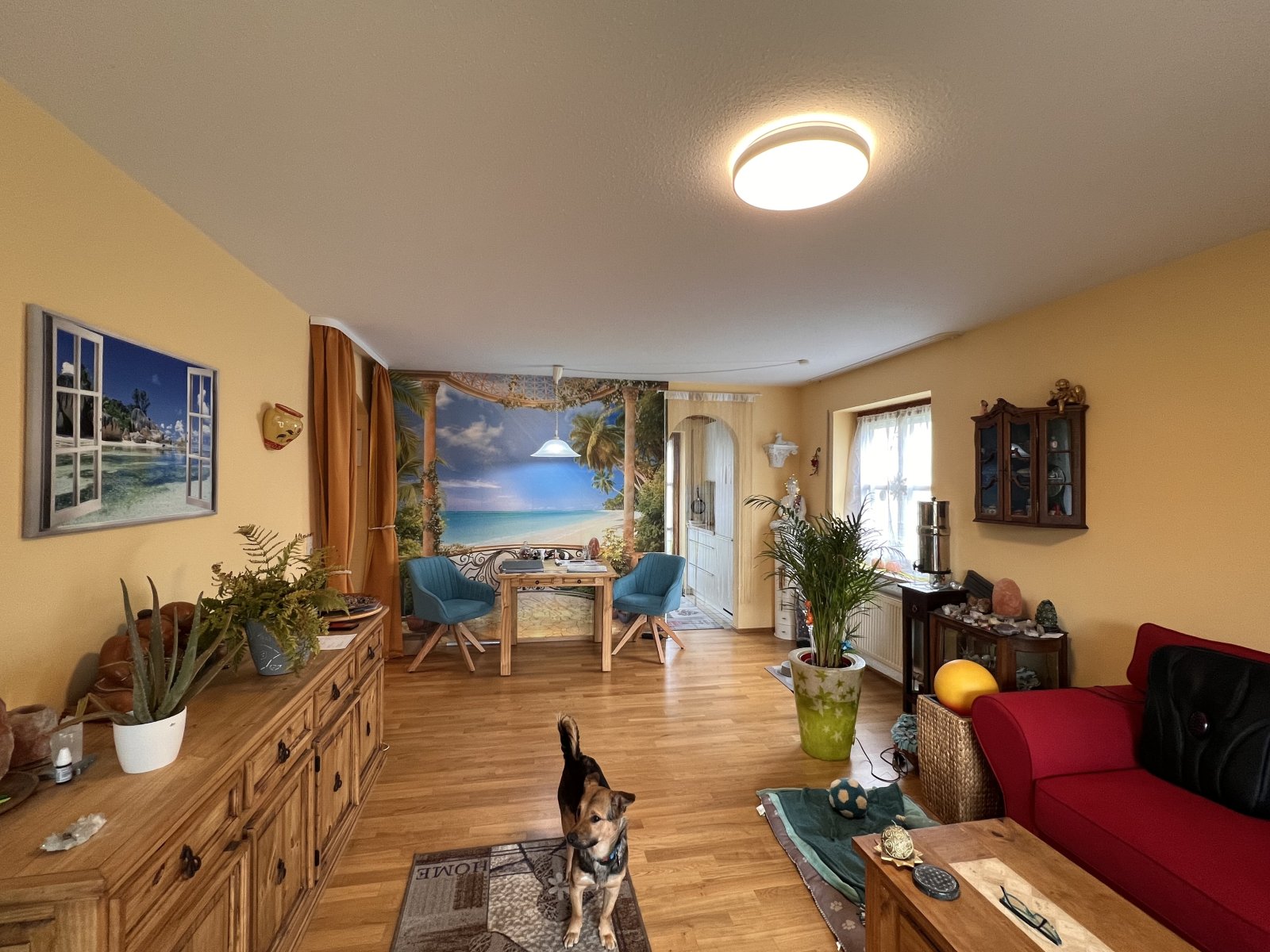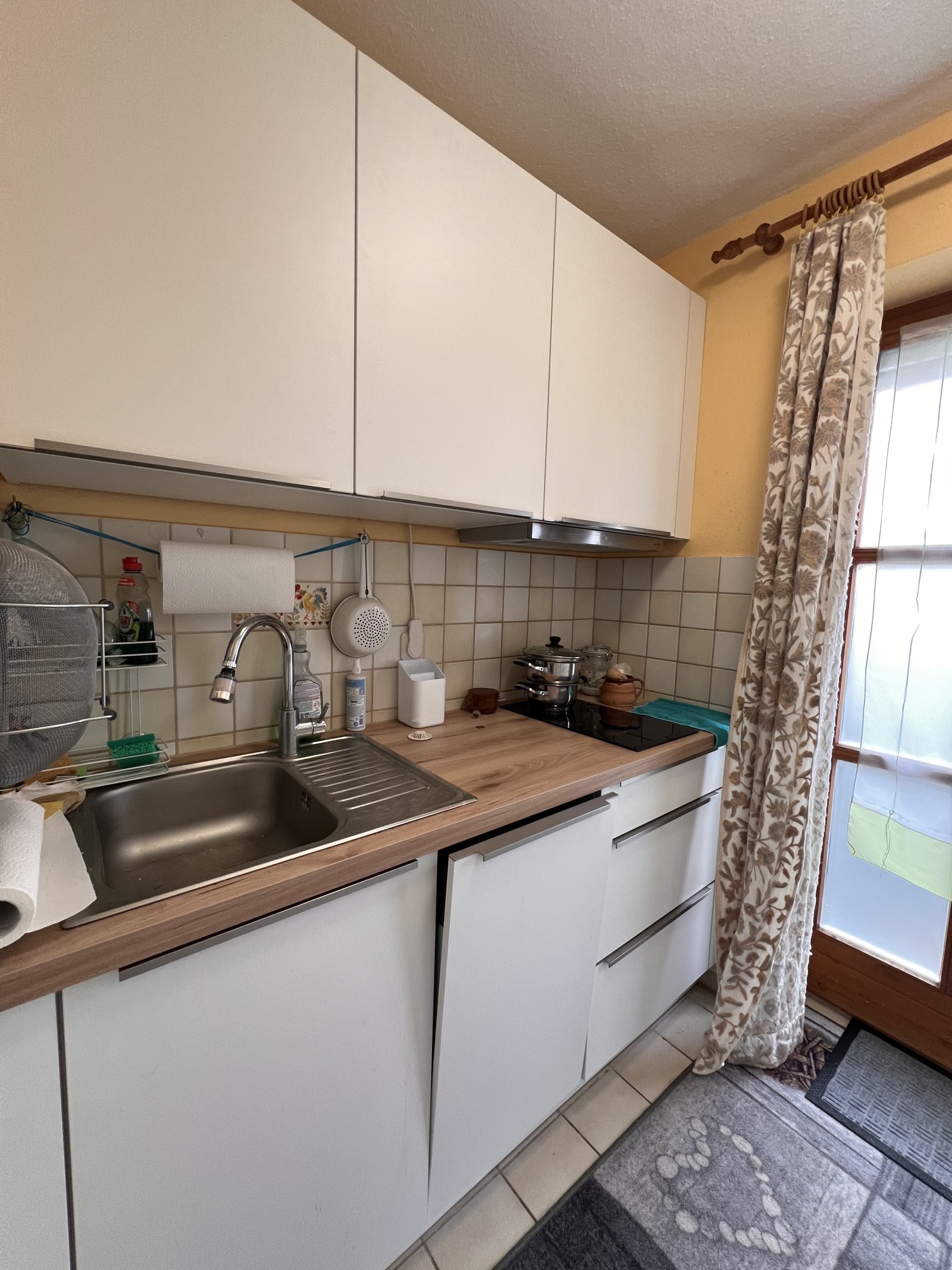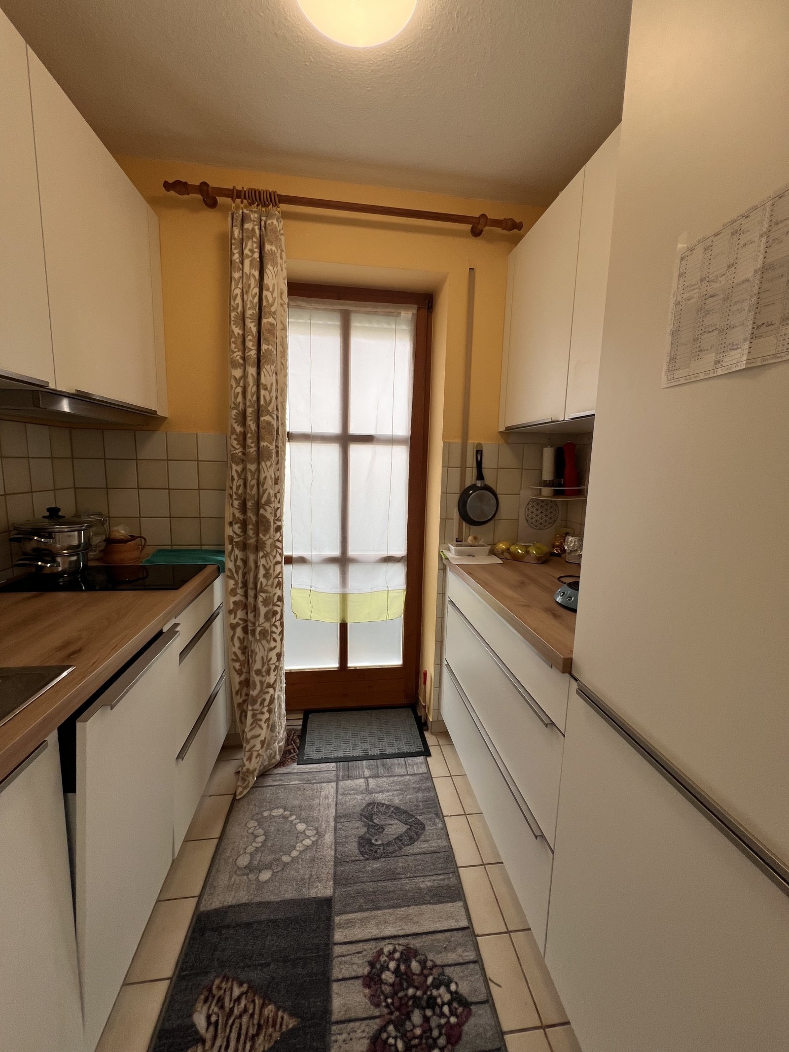Die Einbauküche, ausgestattet mit Kühlschrank, Backofen, Ceranfeld, Spülmaschine und Dunstabzug, ist im Kaufpreis enthalten. Sie wurde erst kürzlich in die Wohnung integriert und hat etwa 6.500,-- gekostet. Der Wohnraum ist mit einem ansprechenden Parkettboden versehen.