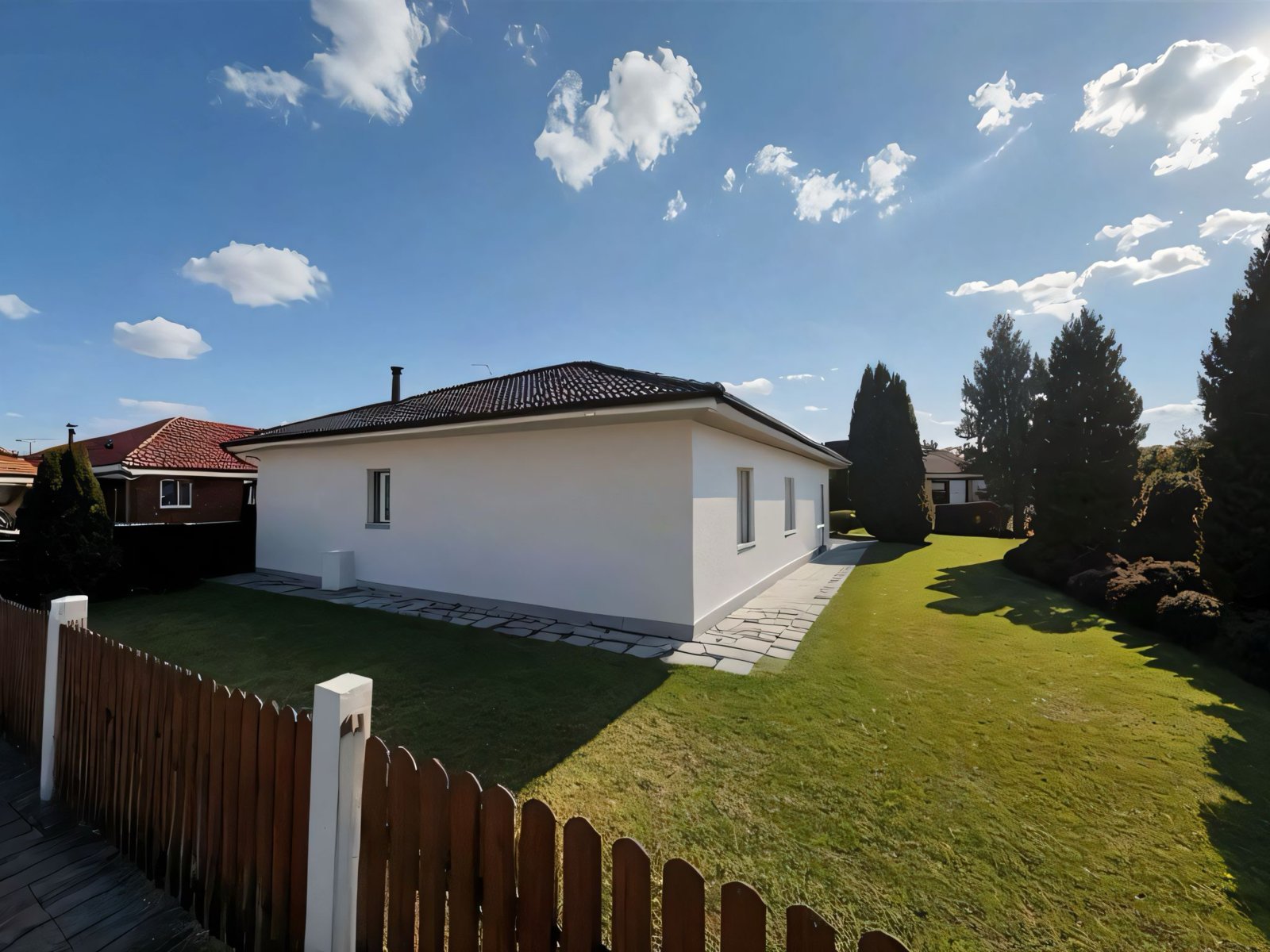 Die gehobene Ausstattung des Bungalows wird Sie begeistern. Der Fliesebboden sorgt nicht nur für eine ansprechende Ästhetik, sondern ist auch äußerst praktisch, da sie pflegeleicht und langlebig sind. Die Fußbodenheizung verteilt die Wärme gleichmäßig im Raum und sorgt für ein behagliches Wohnklima, während die Gasbefeuerung eine effiziente und umweltfreundliche Heizlösung darstellt. Die neuwertige Bauweise garantiert, dass Sie in ein Zuhause einziehen, das in einem erstklassigen Zustand ist und Ihnen langfristig Freude bereitet.